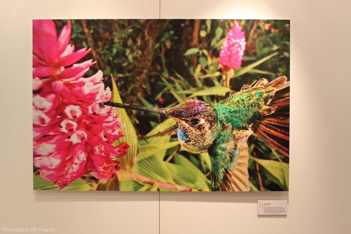 La mostra comprendeva 60 immagini straordinarie, scattate dai più grandi fotografi in campo. Ho ammirato la famosa fotografia “La ragazza afgana” di Steve McCurry, la “Namibia” di Frans Lanting, “Panama” di Christian Ziegler, il Canada di Norbert Rosing e ancora Paul Nicklen, David Doubilet, Steve Winter, Carsten Peter, Jodi Cobb, Annie Griffiths Belt, Mattias Klum, Brian Skerry, George Steinmetz. Progetti di ricerca, spedizioni, avventure, scoperte, fenomeni naturali, storie di animali e culture straniere.