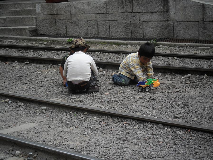La foto è relativa al viaggio in Perù che abbiamo fatto un anno e mezzo fa: bambini peruviani che giocano con poco tra i binari di una ferrovia, ai margini commerciali e degradati di una delle meraviglie del mondo, Machu Picchu. I bimbi giocano poveri e affamati tra un treno e un altro che passa proprio su quei binari un attimo dopo che loro si sono tolti, in rischio continuo, mentre a pochi metri il mondo del turismo si diverte e ciascun turista spende in un giorno i soles (moneta locale) che servirebbero a sfamarli entrambi per un mese…