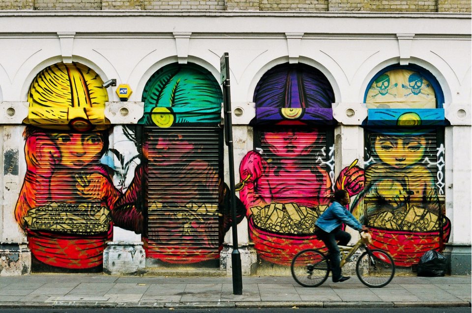 A Berlino, Copenaghen e Amsterdam la bicicletta è il mezzo preferito da cittadini e turisti che si riversano per visitare soprattutto la città e si fermano nei suoi quartieri famosi anche per le opere anonime di arte murale: Mitte, Nørrebro, Amsterdam-Noord. Graffiti e biciclette parlano il linguaggio della strada.