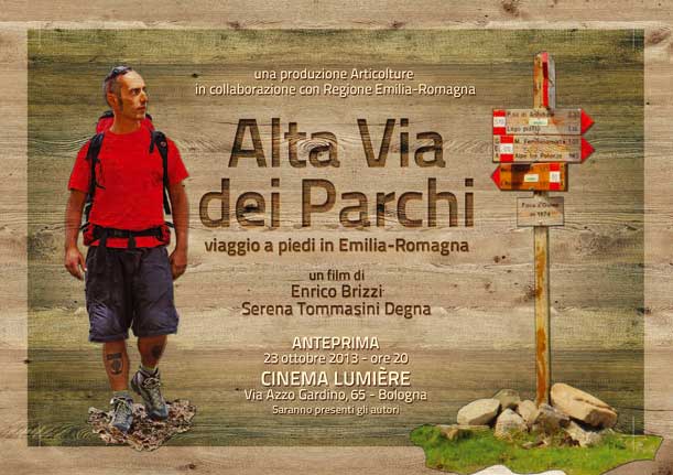 Il 23 ottobre è stato presentato a Bologna in anteprima al Cinema Lumière, il film documentario “Alta Via dei Parchi. Viaggio a piedi in Emilia-Romagna”, realizzato da Enrico Brizzi e Serena Tommasini Degnache, che racconta il trekking dello scrittore lungo questo itinerario.