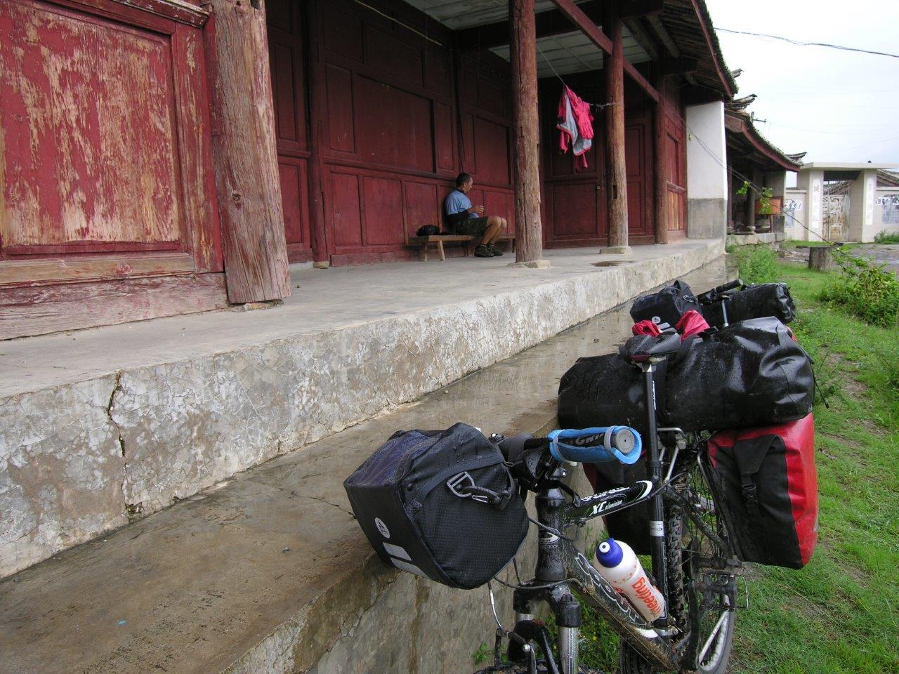 Da qui puntiamo verso nord lungo una strada secondaria che attraversa il parco di Yulong Mountains. Una sequenza di enormi stampe digitali appena installate sul bordo della strada ci illude di vedere davvero quegli splendidi scorci di montagne e ghiacciai che, invece, restano ostinatamente nascosti dietro una cortina di nuvole. Pedaliamo lungo la bella strada che si snoda in mezzo a un bosco misto che profuma di resine, muschi e funghi. Nei pressi di un piccolo villaggio troviamo ricovero presso una famiglia che ha due letti in più per i rari viaggiatori. Non ci sono materassi, ma stuoie in paglia e coperte in lana infeltrita: per la notte usiamo i nostri sacchi a pelo.