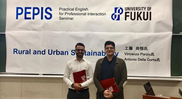 E’ iniziata come inizia tutto, da un momento d’incontro. Due professori dell’università di Fukui erano in visita a Napoli per un progetto di scambio con l’università L’Orientale di Napoli. In un momento libero scelsero di visitare le catacombe di San Gaudioso dove incontrarono la loro guida, Antonio Della Corte, socio della cooperativa La Paranza. Al termine della visita guidata invitarono Antonio a raccontare l’esperienza della cooperativa in Giappone, nell’ambito di un corso di laurea sullo sviluppo locale. Inizialmente pensammo fosse uno scherzo, ma dopo 4 mesi eravamo lì, ospiti dell’università di Fukui a raccontare come, a Napoli, nel Rione Sanità, un gruppo di giovani competenti e volenterosi stavano creando opportunità di lavoro valorizzando le risorse locali. Durante la presentazione che precedette la nostra “lezione” avevamo gli occhi lucidi e carichi di orgoglio. Ci hanno detto che il nostro racconto ha inspirato gli studenti giapponesi, abbiamo risposto che quell’esperienza di confronto ci ha insegnato tanto e soprattutto ha fatto nascere nuove relazioni. Speriamo di tornare in Giappone nel 2018.
