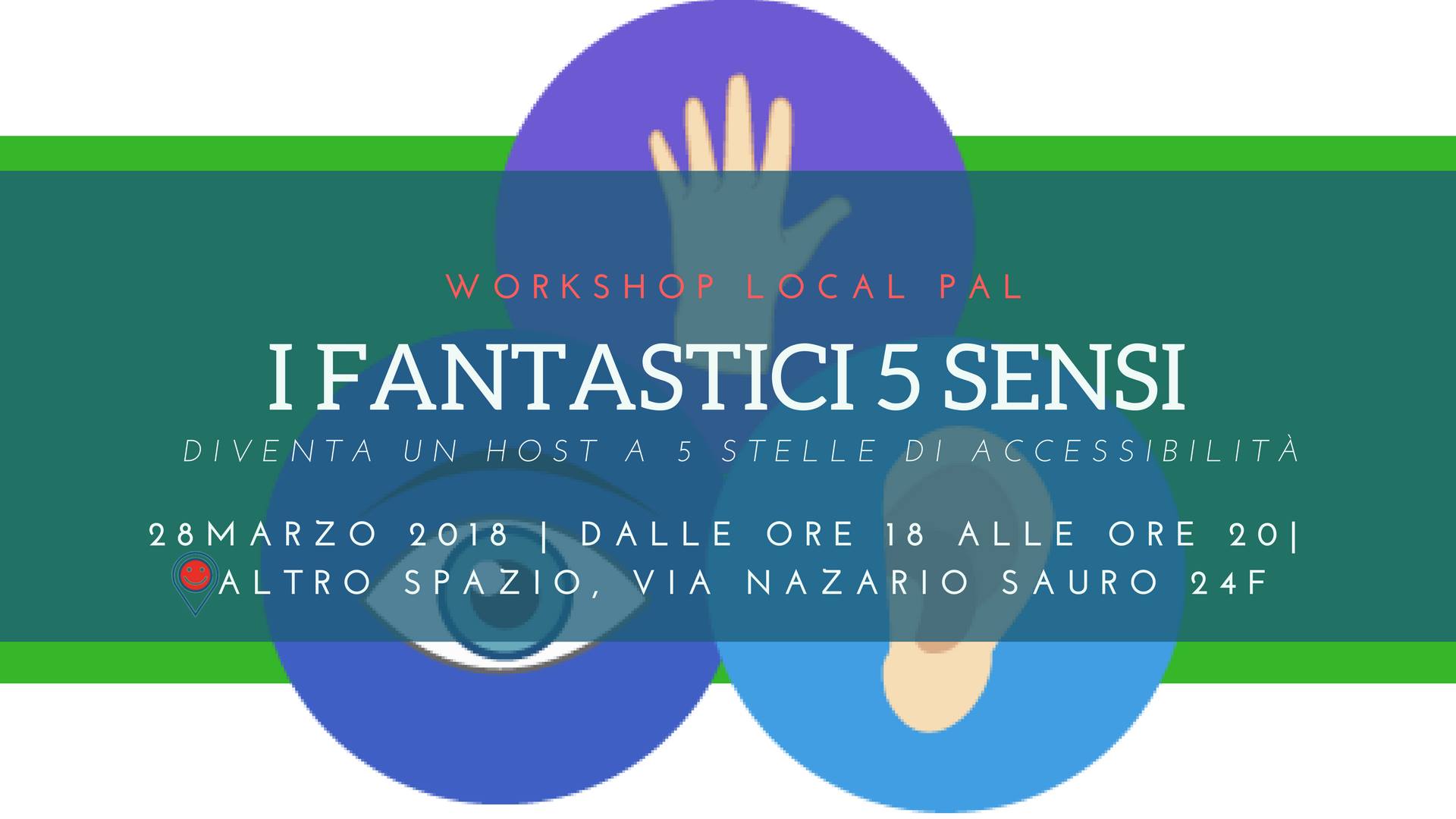 Durante l’appuntamento all’Altro Spazio, degustando un buon aperitivo, si raccoglieranno le adesioni per i workshop co-organizzati da diversi collaboratori: persone sorde, persone con disabilità motoria, ciechi e ipovedenti.