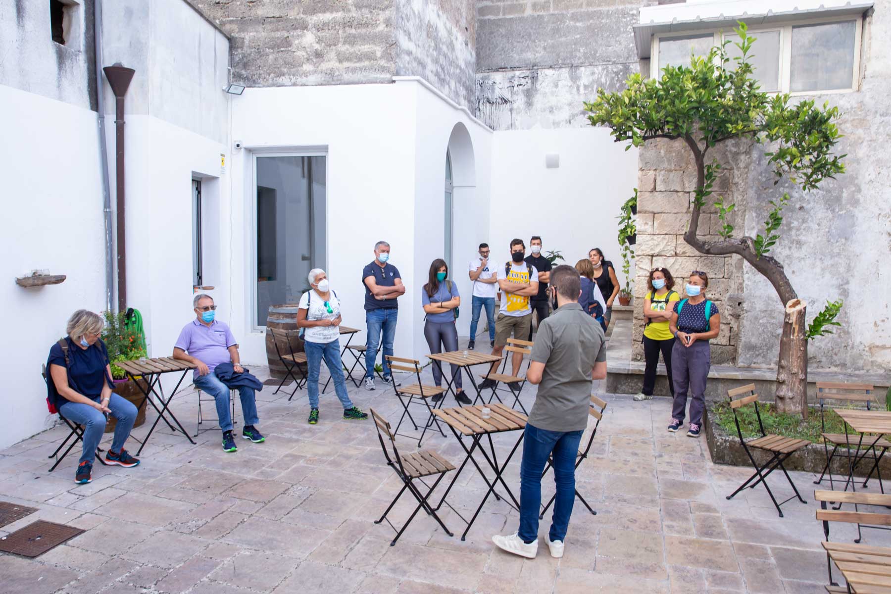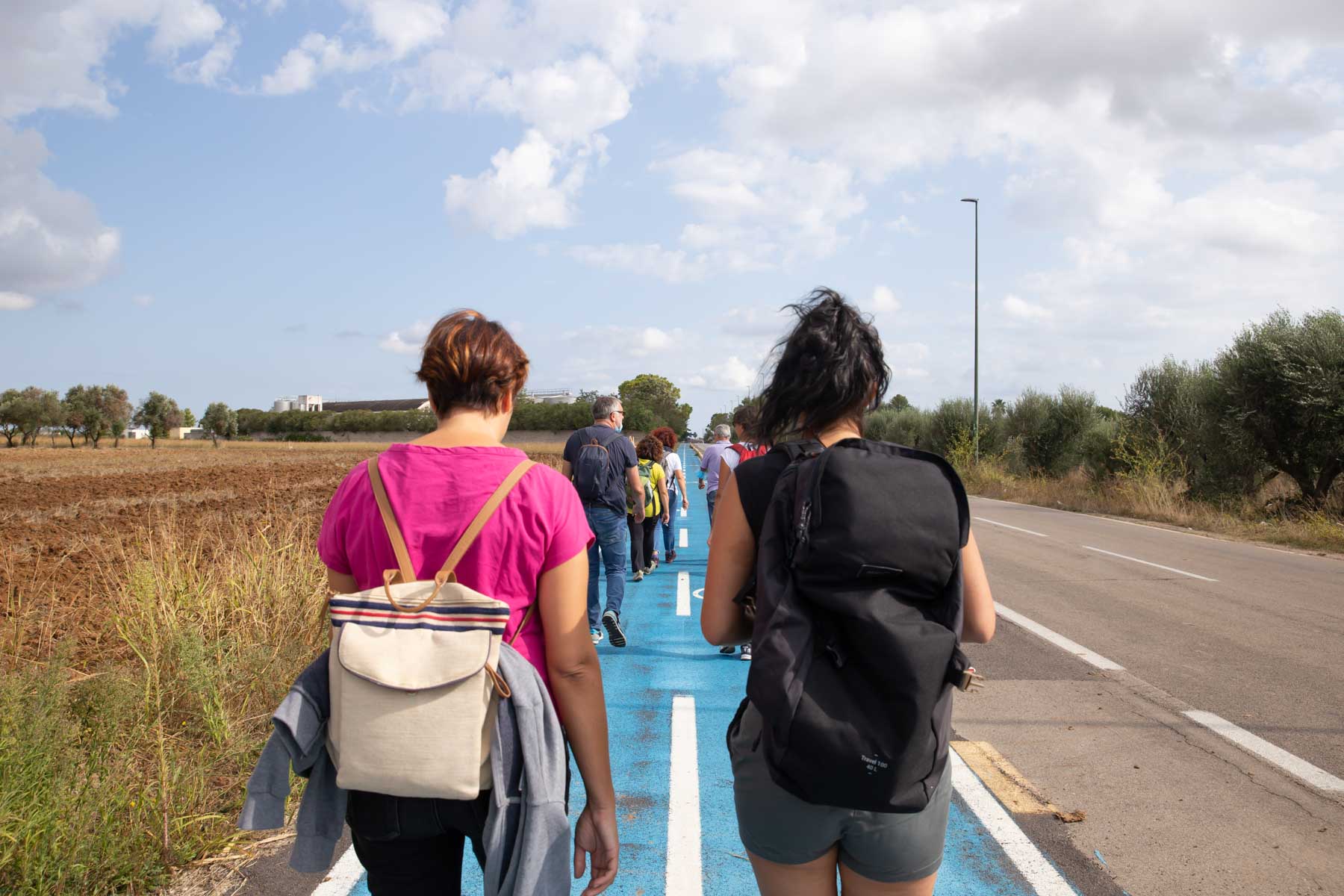 “Era, infatti, insostenibile poter pensare di gestire tanti piccoli eventi dislocati su un territorio così grande. Fino a maggio in realtà non eravamo riusciti a mettere nero su bianco una bozza di programma, perché eravamo tramortiti dalla fine del lockdown e  non esistevano ancora dei veri e propri protocolli per la gestione di eventi. Volevamo attendere tempi migliori, e capire se l’estate ci avrebbe donato un po’ di tregua. Così è stato per fortuna, e il caldo sole estivo ha fatto germogliare una grande idea. Abbiamo pensato, infatti, perché non fare un viaggio a piedi e in bicicletta aperto ad un numero ristretto di persone? Un viaggio che avrebbe dato la possibilità di incontrare lungo la strada genius loci e veri e propri presidi di bellezza, laddove la tutela della biodiversità ha sede! E così è stato.” racconta Luciana Lettere di Made for Walking, co-organizzatrice del festival assieme a Camera a Sud. L’edizione si è sviluppata quindi in maniera più lenta, più raccolta, limitando il numero di partecipanti, ed ha unito geograficamente il nord e il sud Salento a suon di passi e pedalate!