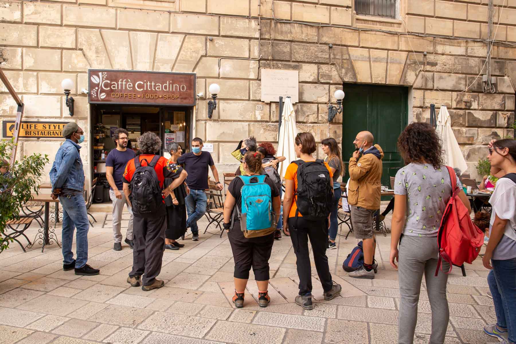 Per chi ne aveva ancora le forze (piedi permettendo) c’era anche la possibilità di godere di un aperitivo nel giardino di Crocevia, centro multiculturale sempre nel capoluogo, dove sorseggiando del buon vino “etico” si poteva ascoltare il racconto di viaggio di Giuseppe Caridi autore del libro “Sette Passaporti”.