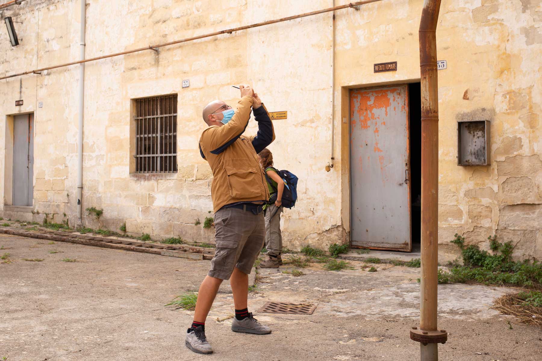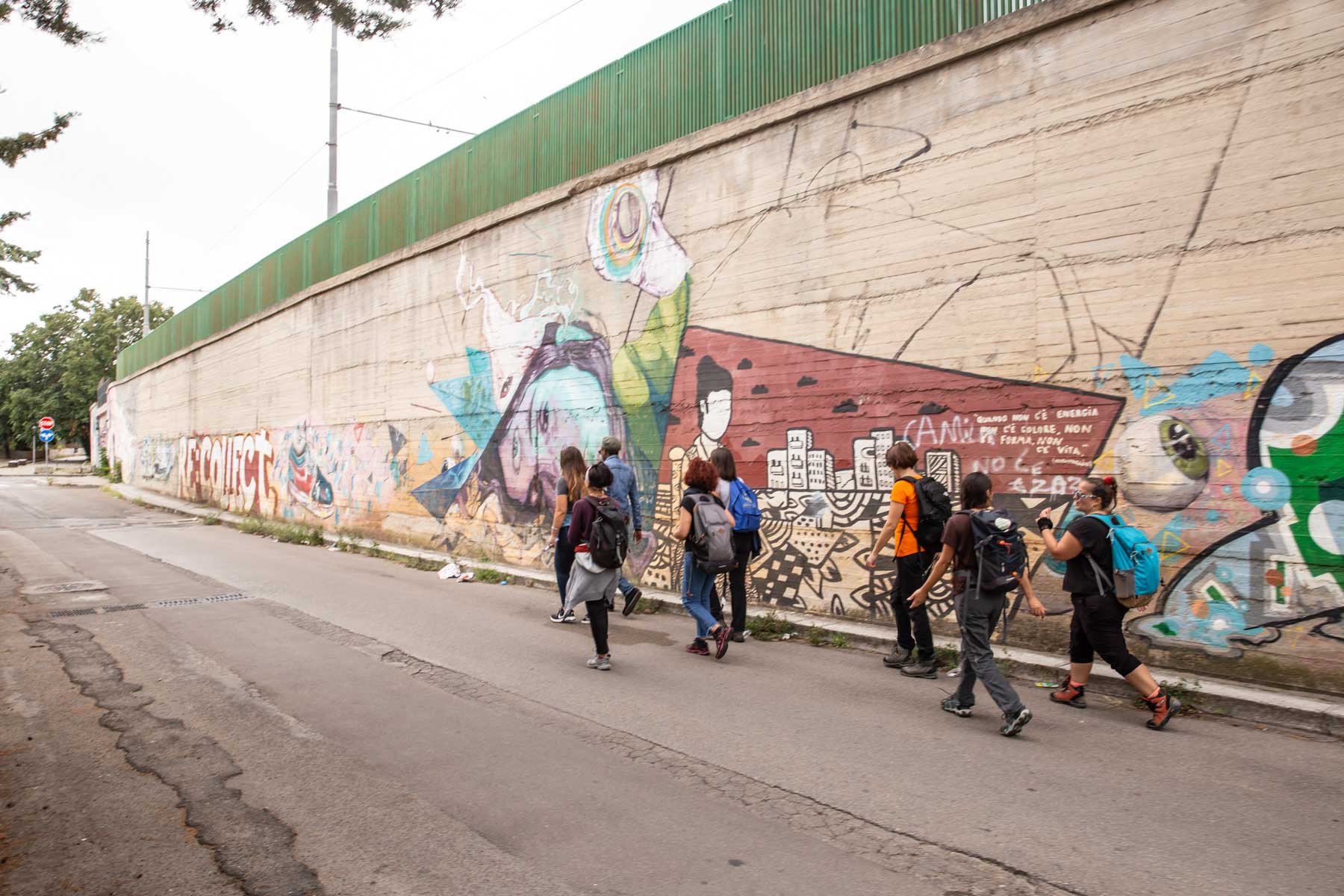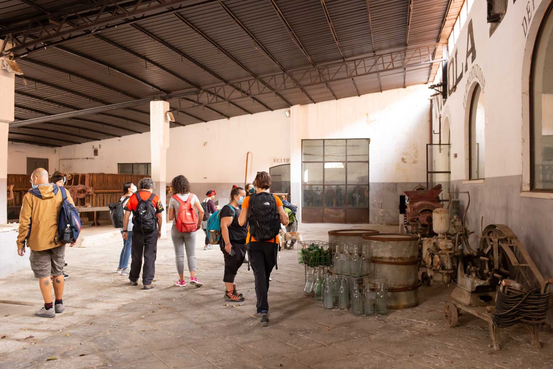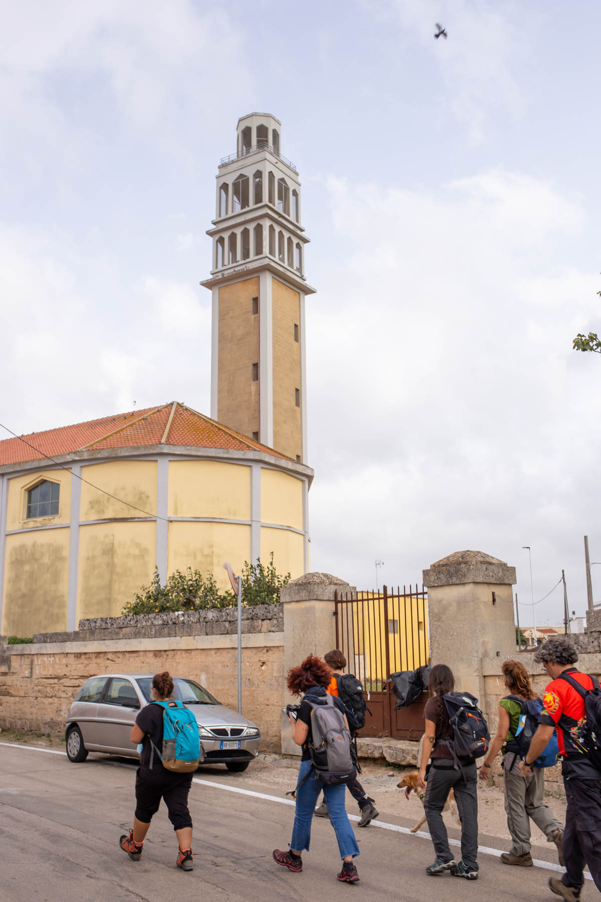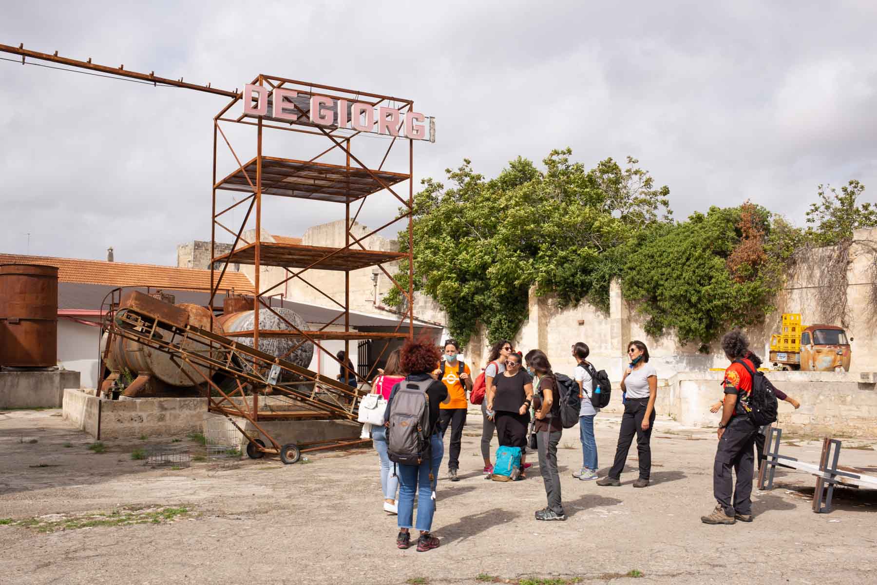 La mattina successiva, il 3 ottobre l’appuntamento per la seconda giornata del festival è sempre stato dato in stazione, stavolta a Lecce, dove altri quindici camminatori hanno sfidato un vento di scirocco con raffiche di 90 chilometri orari e percorrendo circa 23 chilometri. Nonostante le avversità meteo e gli avvisi della protezione civile, l’umore della comitiva è sempre stato alto. I luoghi principali visitati sono stati l’Ex Distilleria De Giorgi a San Cesario di Lecce, uno dei più interessanti e imponenti monumenti dell’archeologia industriale del Sud Italia, oggi affascinante esempio di recupero e valorizzazione e prezioso luogo di memoria, e Palazzo Palmieri nel borgo di Martignano, edificio del XVII sec., dove ha sede un centro polifunzionale che coniuga servizi turistici e cultura, punto di riferimento per il turista, per il visitatore, ma dove da anni si tutela una particolare biodiversità, quella linguistica, con iniziative legate alla conservazione del “Griko” dialetto di origine greca che i nonni della “Grecìa Salentina” parlano ancora.