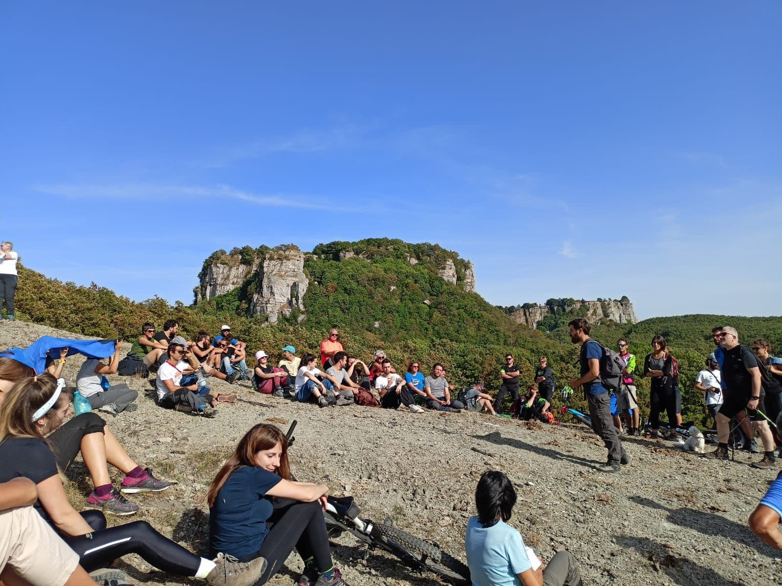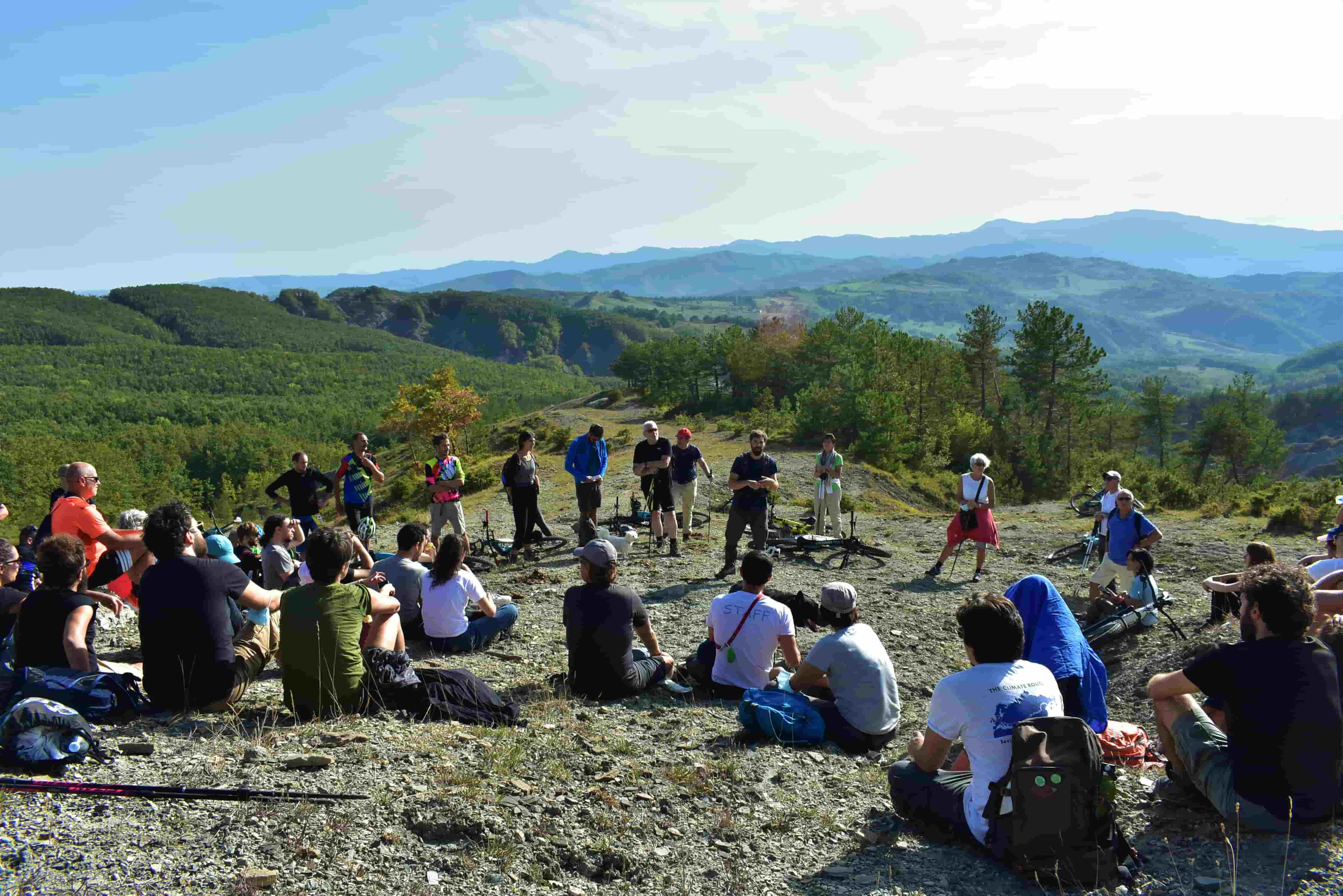 In un momento simbolico e non impattante, come nei secoli scorsi si coinvolgono le comunità locali per disegnare i confini e non avere diatribe, abbiamo disegnato insieme ai camminatori il confine, un confine che unisce e non divide. Una cerimonia con cui abbiamo celebrato i confini, l’unione delle diversità, riconoscendo in questo aspetto l’unicità del Parco ed il suo grande valore, il mare verde di Tonino Guerra, la natura che unisce.