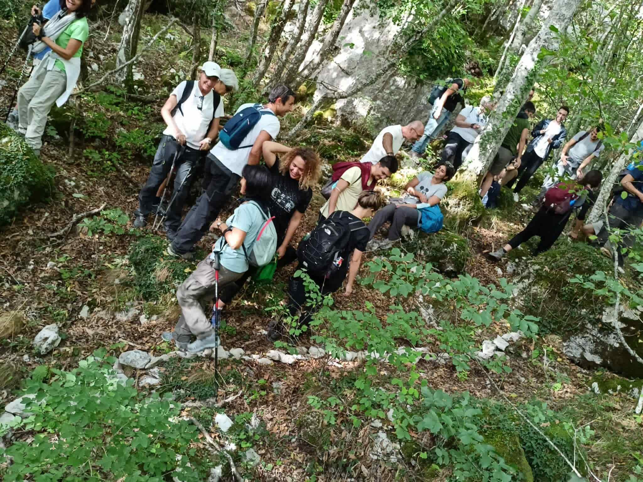 Il gruppo di coordinamento della tappa durante un itinerario organizzato per il festival