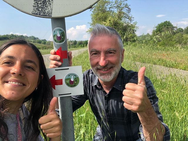 Da quell’estate del 2018 è cambiato tutto: percezione, osservazione, relazioni, priorità, obiettivi. Ho iniziato a fantasticare di vivere in un territorio attraversato da gente che cammina e dalle loro storie. E così, tornata a casa, con gli occhi di chi ha avuto la fortuna di scomparire per un po’ per ritornare più consapevole del bello che si nasconde tutto intorno, ho iniziato a camminare in lungo e in largo immaginando di tracciare un percorso. Allora non conoscevo ancora Leo, senza il quale non ce l’avrei mai fatta (e non ce la farei tutt’ora!). L’incontro con lui è stato naturale e provvidenziale. Lo conoscevo di vista, un po’ per i libri, un po’ per il bar (Acquerello, ndr). Un giorno qualcuno mi disse che anche lui, come me, stava cercando di tracciare un Cammino nei nostri territori. Non ci ho pensato due volte, gli ho scritto e dopo aver chiacchierato per neanche 10 minuti, eravamo già in Cammino!>>.