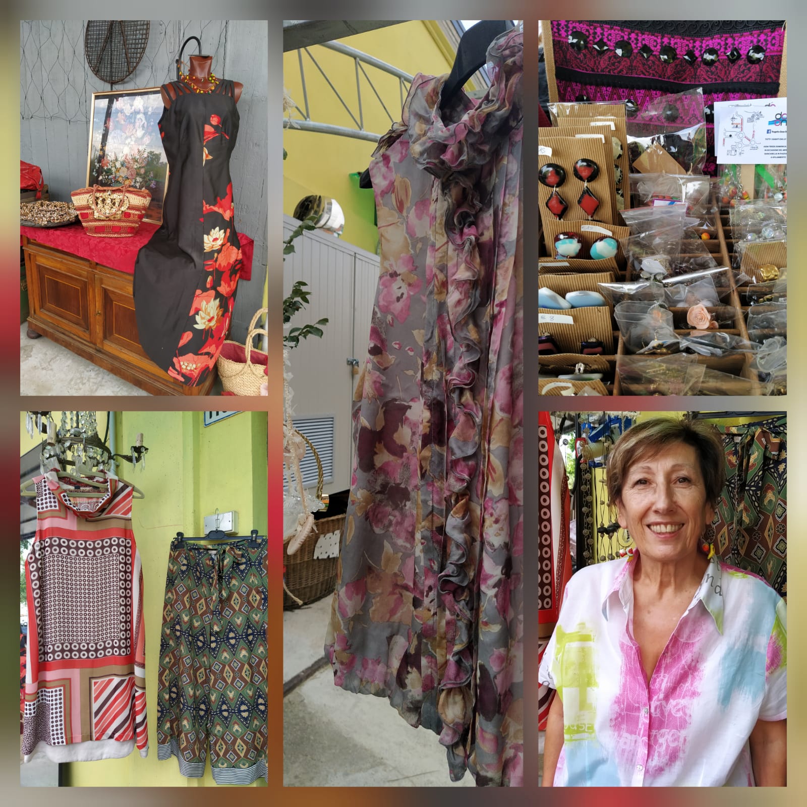 Qualche scatto dei materiali reinventati ed esposti all’Atelier durante la tappa Spilamberto-Valle Panaro. A destra abbiamo la sorridente Mara.
