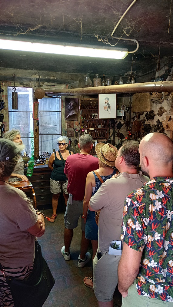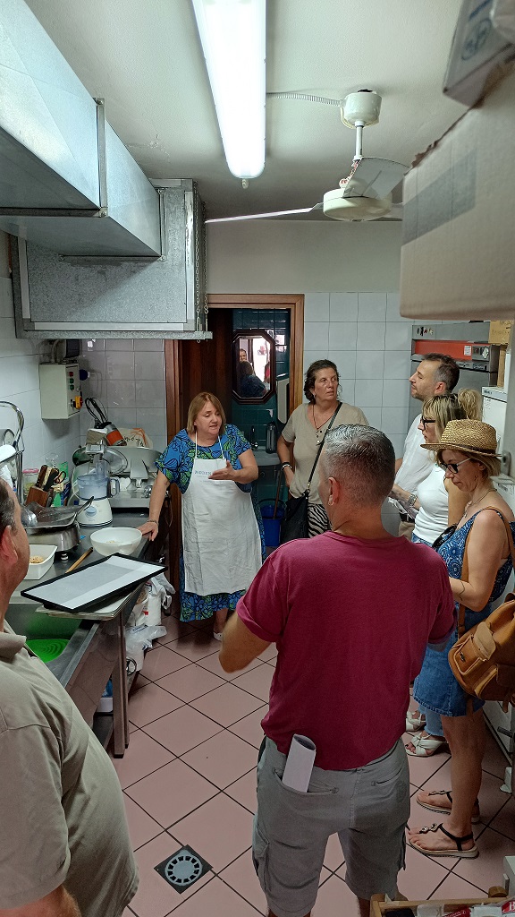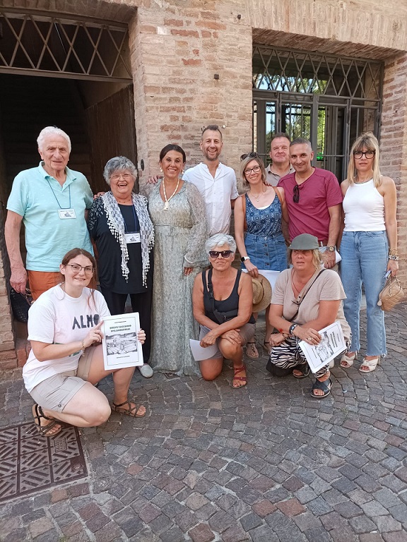 Spilamberto è conosciuto anche come il “paese delle streghe” e il “paese di tante storie strane” e un particolare coinvolgimento lo ha ricevuto la passeggiata “La Spilla dei ricordi” durante la quale abbiamo esplorato e assaporato le vie del centro storico in piacevole compagnia di Luca Parmeggiani (detto “Cavalier Lamberto”). Partendo dal Torrione Medievale, sede dell’Ordine del Nocino Modenese, siamo stati accolti dal Tacconi che ha aperto le porte della sua meravigliosa bottega. Catturati dal profumo degli amaretti, al forno Bonucchi ci è stato svelata la ricetta! Pochi metri avanti, ecco Alessandro Giusti, figlio di generazioni di pittori, raccontarci alcuni retroscena e simpatici aneddoti legati ai suoi dipinti. E per finire in bellezza…quattro chiacchiere tutti insieme al Bar Nazionale sorseggiando lo “Squassabala” (l’aperitivo storico del paese) e in compagnia della signora Orlandi in rappresentanza delle tante famiglie di giostrai con tanti ricordi da condividere.