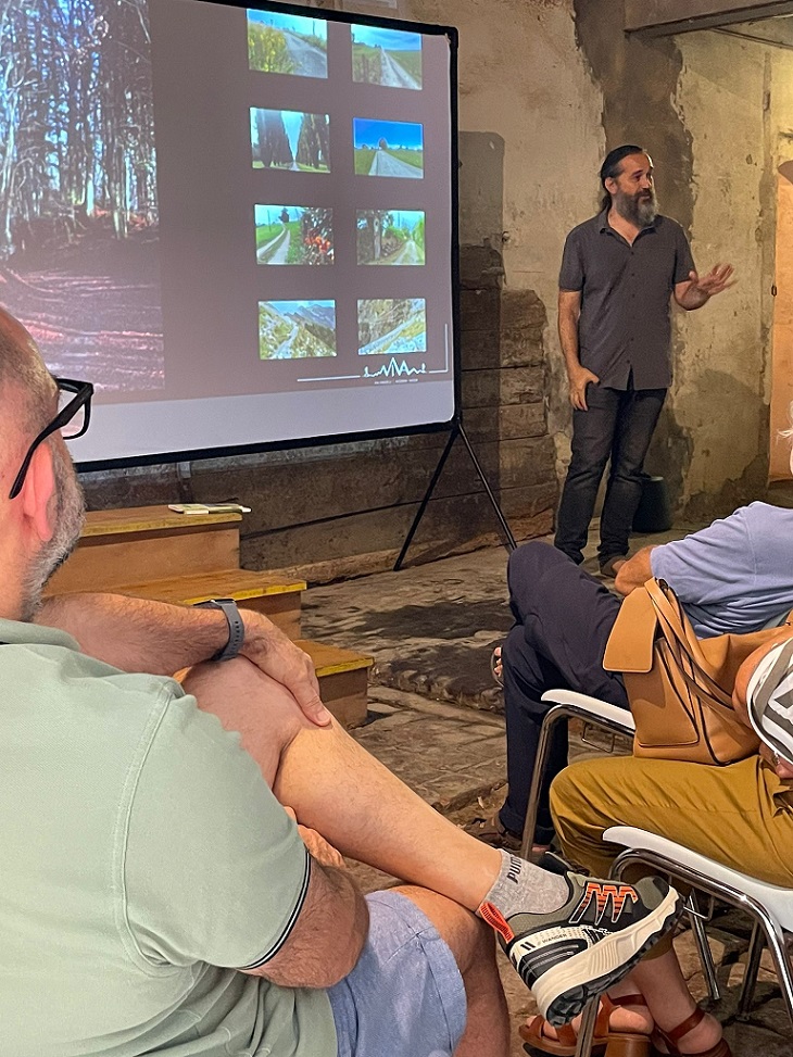 Il racconto di Spilamberto è proseguito con la scoperta di luoghi inusuali come l’Ex Stabilimento Italiano Prodotti Esplodenti (ex – SIPE) guidati da Maria Cristina Vecchi dell’Università Popolare Natalia Ginzburg e dagli ex dipendenti dello stabilimento, che insieme al film documentario realizzato da Bop Area (regia di Enzo Perriello) hanno fatto vivere ai partecipanti forti emozioni con i loro ricordi e testimonianze. I visitatori, inoltre, hanno potuto accedere ad alcuni gioielli privati aperti in via del tutto eccezionale per l’occasione, come ad esempio Villa Testi, dove ad attenderli c’era la proprietaria, sempre gentile e disponibile all’incontro, pronta ad aprire le porte di casa, raccontare la storia e condividere con tutti noi qualche curioso aneddoto privato. Una straordinaria accoglienza è stata anche quella della famiglia Leonardi sulla collina di Collecchio, il punto più alto di Spilamberto, raggiunta all’alba di sabato 26 agosto percorrendo le strade medievali del paese.