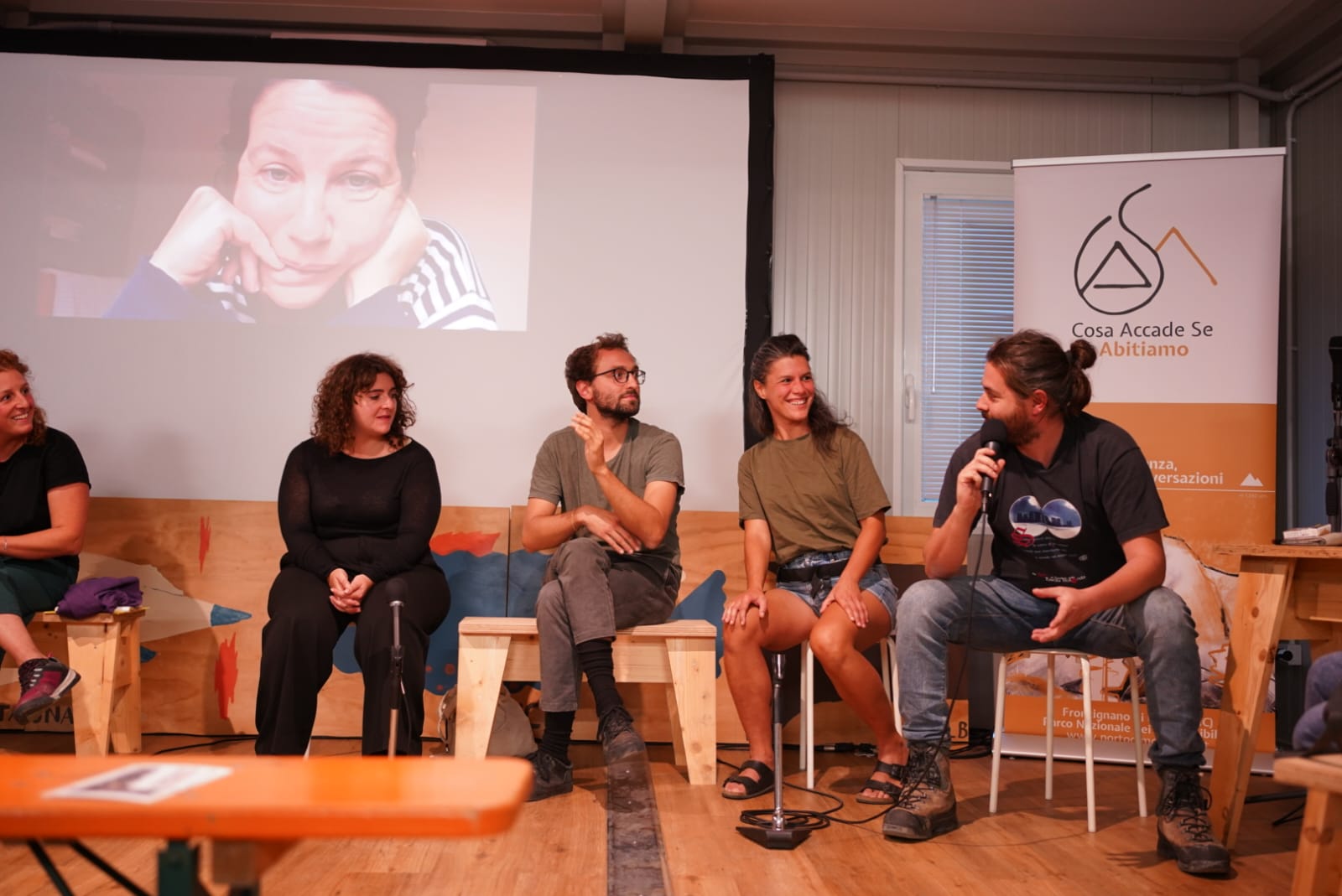 Patrizio e Fabiana de Il Giardino delle Farfalle che in modalità multitasking cucinavano, seguivano l’escursione, accoglievano alcuni tecnici per la ricostruzione del loro giardino e elargivano sorrisi e racconti lontani e vicini senza soluzione di continuità; Simona, Antonella e Marcello di Alcina, sempre importanti le idee che portate grazie alla vostra lunga esperienza nel Parco; Sauro Scaficchia, il sindaco di Fiastra, per le parole e le foto sui cambiamenti antropologici della loro comunità; Andrea di Arquata Potest, al quale va per il secondo anno il premio staff per averci dato una mano ovunque e sempre, per aver ballato sino a notte fonda di sabato sera per poi guidarci in escursione alla domenica mattina; Sonia, Pierluigi, Simona, Aurora e tutta la rete di IT.A.CÀ nazionale che ci aiuta a guardare oltre e altrove, su turismo, responsabilità, abitare; Augusto e Paolo di Cantieri Mobili di Storia, che in un’epoca come questa hanno dato alla narrazione del territorio un valore grandissimo tramite la loro esperienza e i loro ospiti, e quindi grazie anche Nicola, Armando e Alessia, e a Carlotta della LUA; Stefania che ci ha portato in giro per altri festival della zona con le testimonianze e la voce di Giulia, Valentina, Irene, Michele, Maria e Matteo.