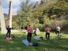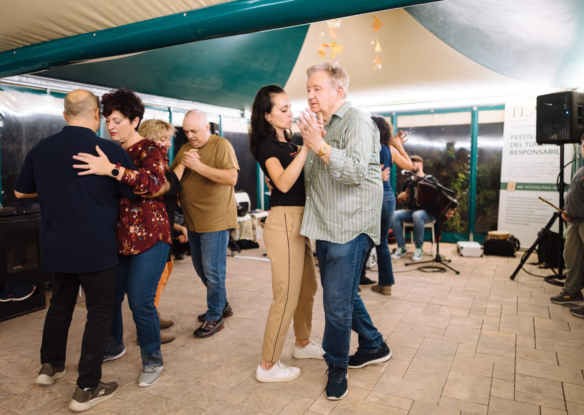 Più pacatamente, ma con la massima attenzione, abbiamo ascoltato Alessandro Chiappanuvoli che ci ha spiegato come si realizza un podcast e, tornando con un salto spazio-temporale, a Fiastra, abbiamo ascoltato le parole di Stefano Bianchi e Mauro Angelo Blanchi, rispettivamente storico esperto della storia del Castello Magalotti e parente di una famiglia immigrata più di 100 anni fa in Argentina che si è messa alla ricerca delle proprie radici familiari. E riavvolgendo ancora il nastro, la prima sera del festival abbiamo danzato al ritmo del balfolk degli Organetto a cucù che ci hanno deliziato per più di due ore. Per infine, anche se non per ultimo, radicarci con la pratica di Yoga di Francesca Conti di fronte al monumento di Piero Capuzi.