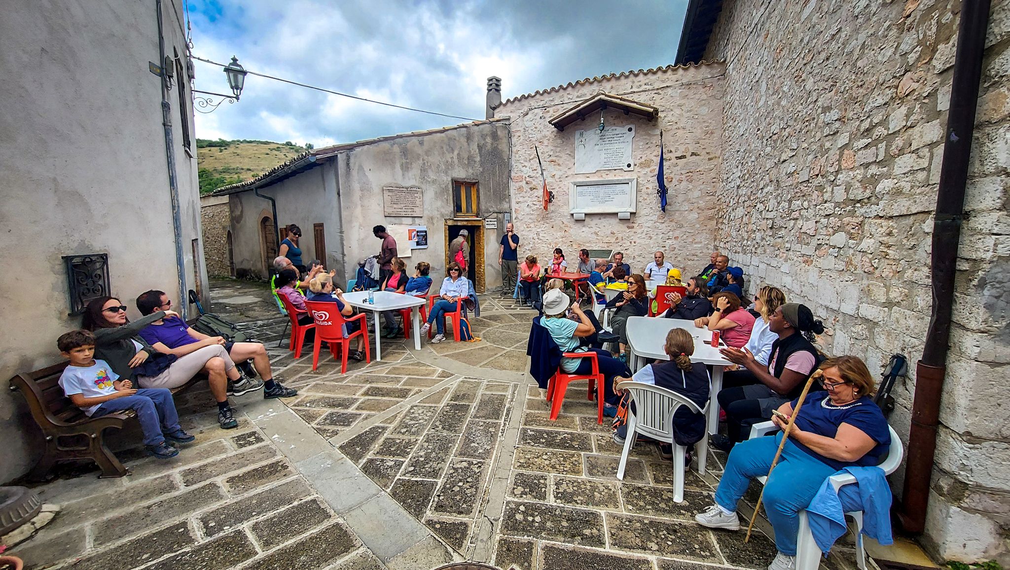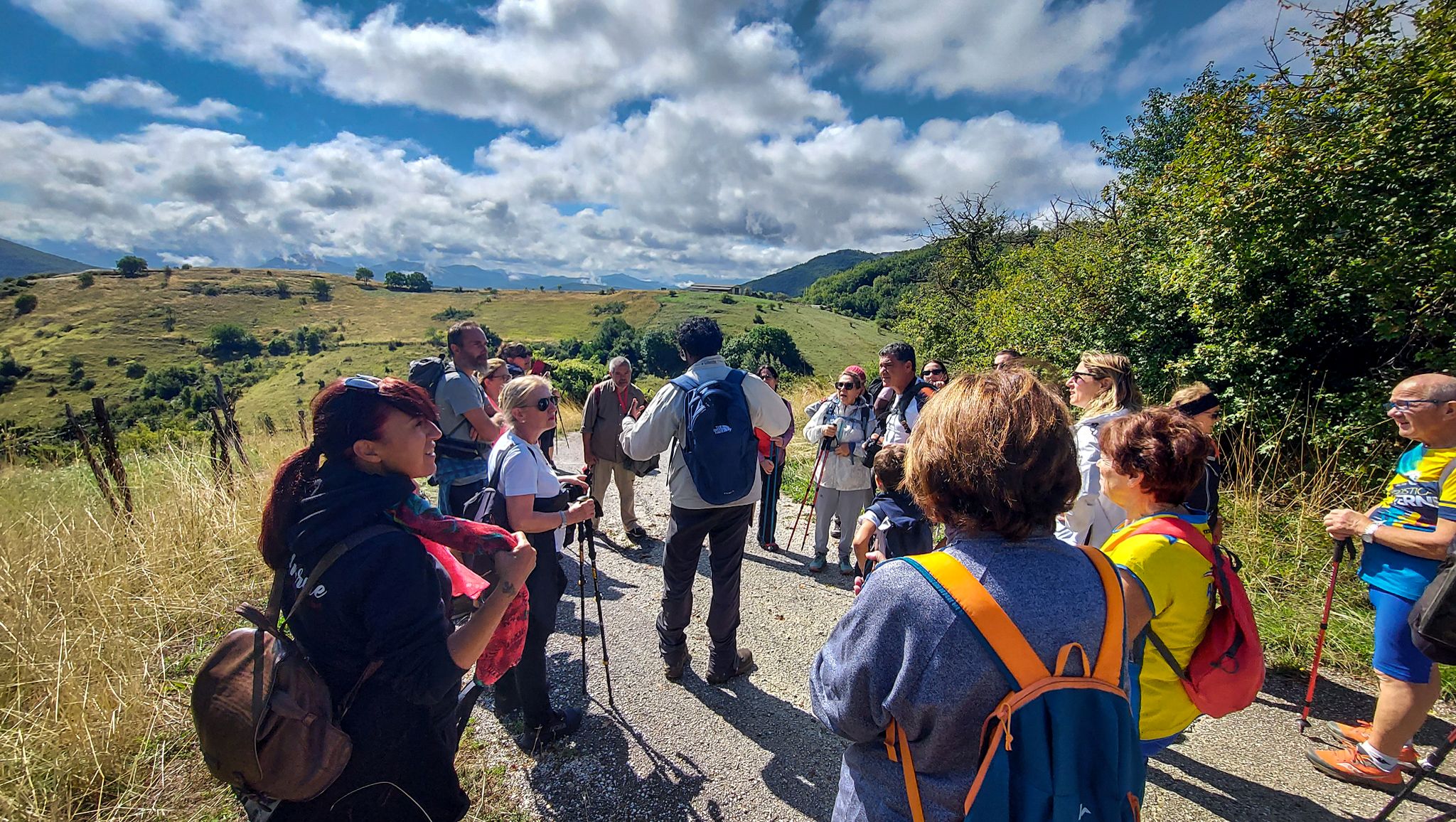 Il secondo fine settimana è iniziato sull’Altopiano di Mucciafora (22 agosto). Un sentiero ad anello di 7 km è stato percorso con il botanico Vikram Iozzo per riscoprire la ricchezza dell’ambiente naturale e delle piante spontanee, fondamentali per la vita della comunità locale. L’evento è proseguito con una degustazione di prodotti tipici (lenticchie e farro) e una visita guidata all’antico “castello” di Mucciafora. Questa giornata ha confermato come il turismo escursionistico e culturale possa essere un motore per la rigenerazione economica e per contrastare lo spopolamento, immaginando nuovi usi per i campi e i pascoli in un’ottica di rispetto e riscoperta dell’identità montana.