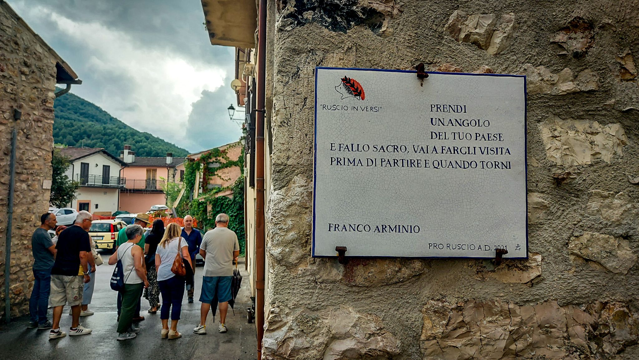 Sabato 23 agosto è stata la volta di Ruscio, frazione di Monteleone di Spoleto, dove l’Associazione Pro Ruscio APS ha mostrato il suo modello originale di fare comunità, fondato su comitati locali tematici (Campetto, Parco, Cultura, ecc.). Questo metodo coinvolge, responsabilizza e mira al futuro, con la creazione di un gruppo di ragazzi e ragazze per il ricambio generazionale. La passeggiata “Ti racconto Ruscio” ha toccato i luoghi simbolo del paese, arricchita da iniziative come “Ruscio in versi”, itinerario poetico che rende la memoria azione e la poesia comunità. L’esperienza di Ruscio è un esempio di attivismo civico che genera solidarietà, coesione e cura, e tiene vivo il legame delle nuove generazioni con i luoghi delle proprie famiglie.